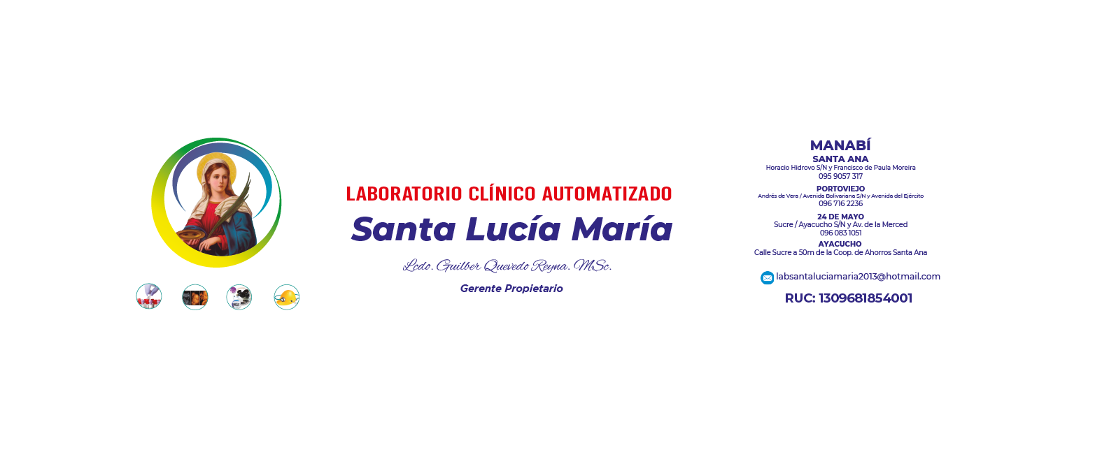 Ofrecemos Servicio de Toma de Muestra a Domicilio en horarios Lunes a viernes En Portoviejo y Santa Ana de 7:00 a 4:00 pm Y 24 de Mayo y Ayacucho de 7:00 a 3:30 pm , Para agendar su cita puede contactarse al 0985830340